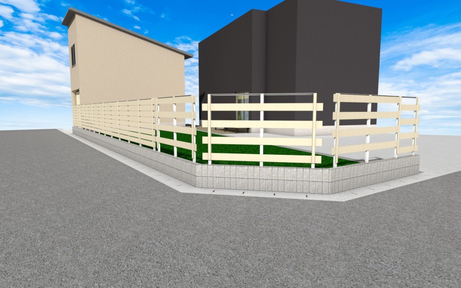 >ブロック2段+フェンス1,600㎜のお庭計画 坂井市