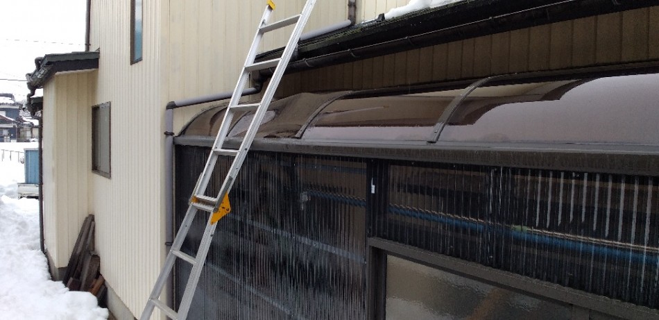 落雪によりテラスのパネルが破損したので補修させて頂きました。